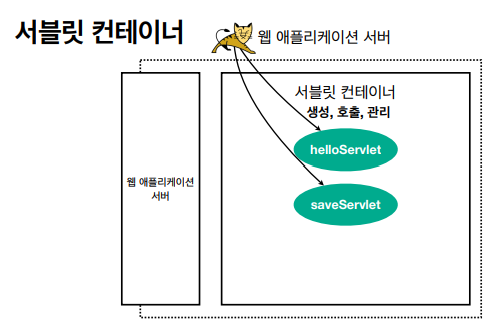 - Servlet 컨테이너에 있는 Sevlet을 통해 요청과 일치하는 servlet을 실행시킨다